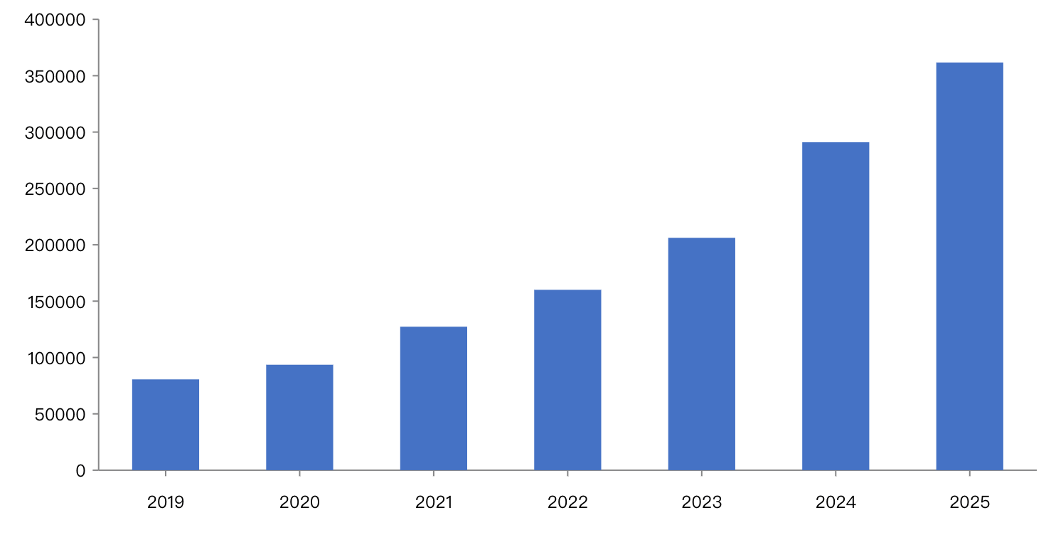 2019-2025北京新能源乘用车月度销量(附Excel下载)
