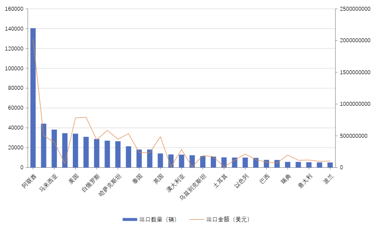 2025浙江省汽车出口各国家地区数量/出口金额