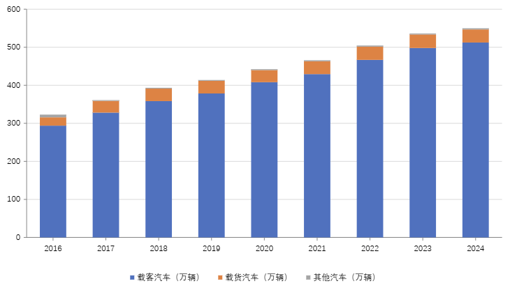 2024上海市民用汽车保有量(分载客汽车/载货汽车/其他汽车)
