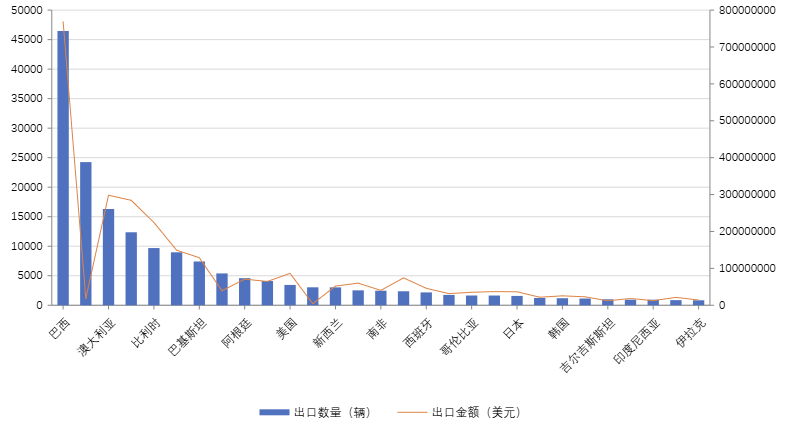 2025河北省新能源汽车出口各国家地区数量/出口金额