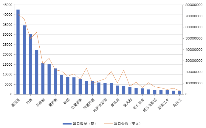 2025陕西省汽车出口各国家地区数量/出口金额