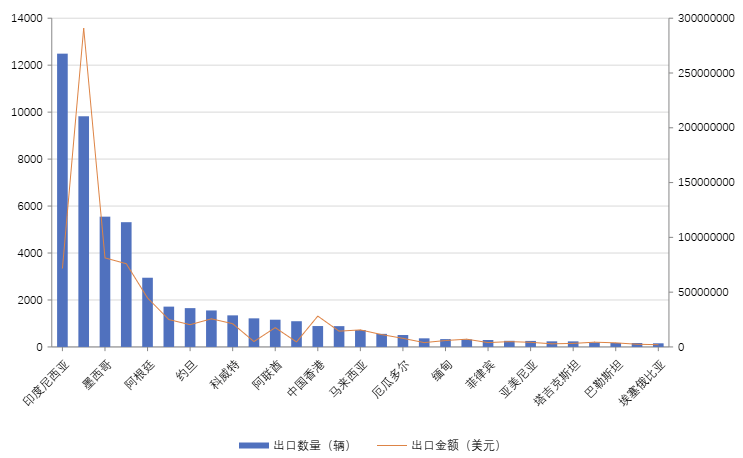 2025广西新能源汽车出口各国家地区数量/出口金额