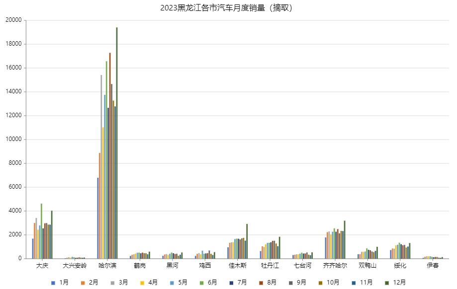 2023黑龙江地级市新能源汽车月度销量(摘取)