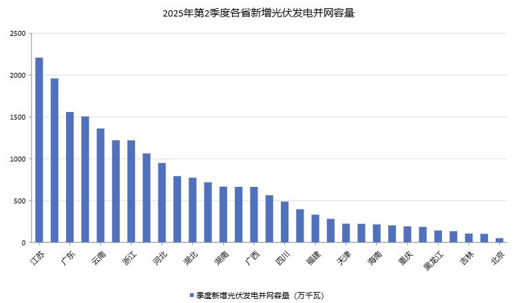 - 2021-2025各省季度新增户用分布式光伏并网容量