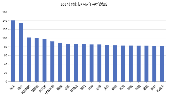 2024各城市PM10年平均浓度