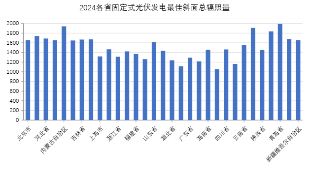 本篇文章为大家介绍历年各省固定式光伏发电最佳斜面总辐照量平均值情况