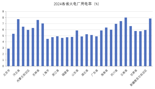 2024各省火电厂用电率