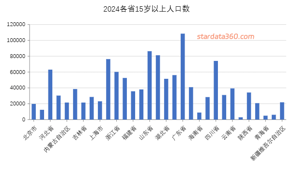 本篇文章为大家分析各省15岁以上人口数、男性人口数、女性人口数