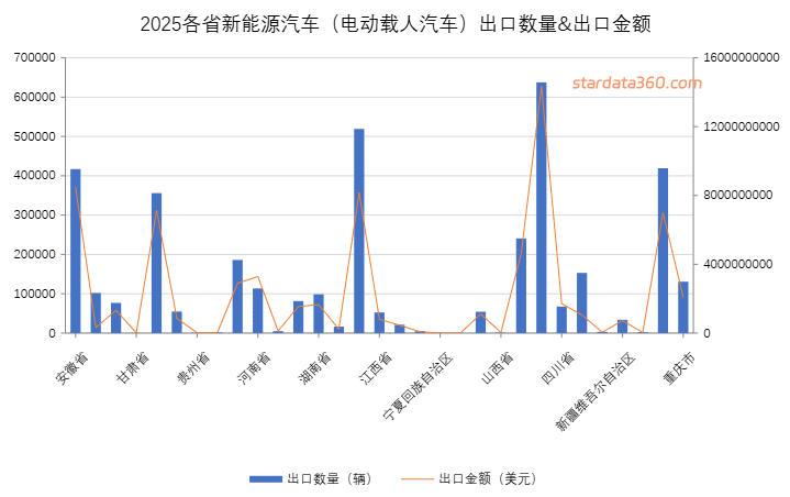 2025各省新能源汽车(电动载人汽车)出口数量/出口金额
