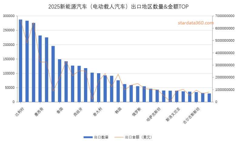 2025新能源汽车(电动载人汽车)出口各国家数量/金额TOP