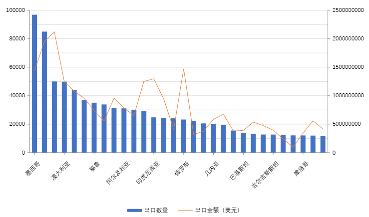- 2025中国商用车出口各国家地区数量/出口金额