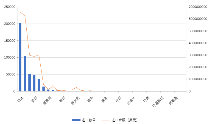 - 2025中国汽车进口各国家地区数量/进口金额