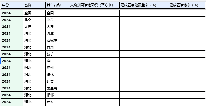 本篇文章为大家介绍2016-2024各城市人均公园绿地面积、建成区绿化覆盖率、建成区绿地率