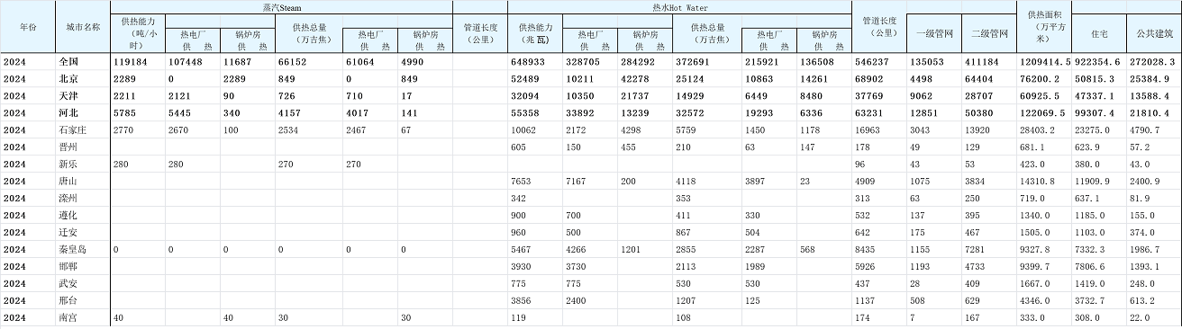 2024各城市热水供热能力