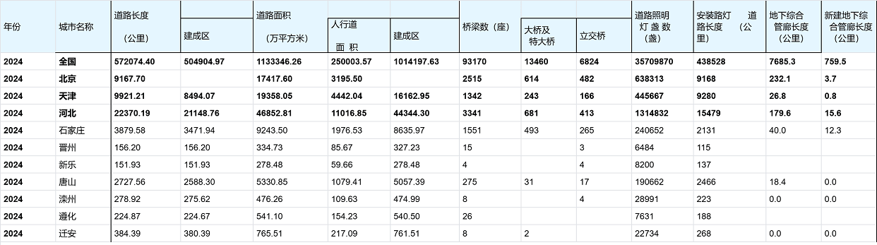 2024各城市道路长度