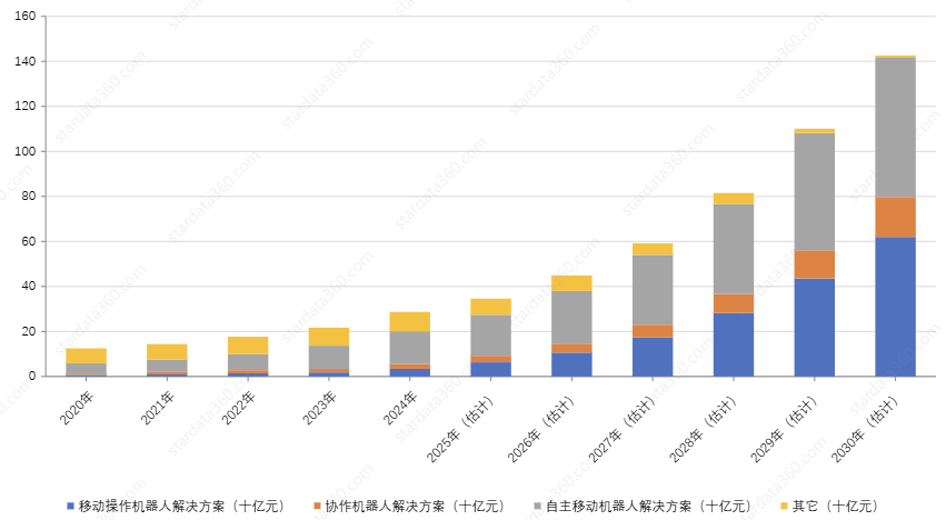 本篇文章为大家介绍2020-2030中国分类型具身智能机器人解决方案市场规模(移动操作机器人、协作机器人、自主移动机器人、其它)