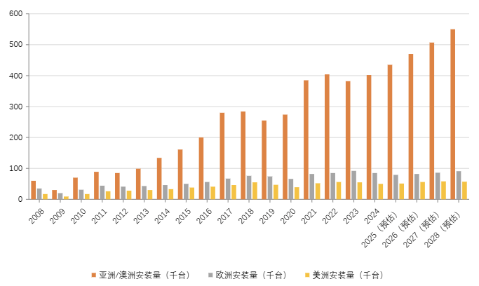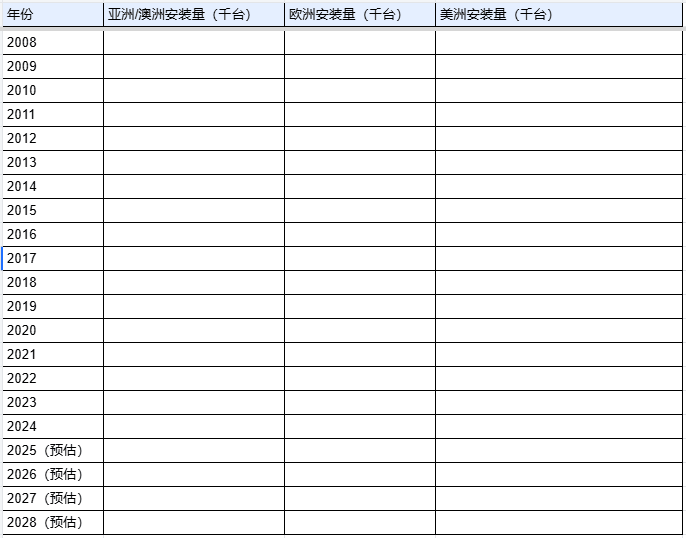 L 机器人 2008-2028亚洲澳洲/欧洲/美洲工业机器人安装量(附Excel下载) 最后更新:2026年4月10日 星源数据官方 2008-2028亚洲澳洲、欧洲、美洲工业机器人安装量 数据来源国际机器人联合会 年度数据,洲的总量 其中2025-2028为预测数据 2008-2028亚洲澳洲/欧洲/美洲工业机器人安装量 Excel数据格式如下,购买后可下载完整数据 支付 ¥45 获取Excel地址(如遇问题 别慌~ 加客服微信:stardata888) 登录购买 OR 免登录购买 微信支付 如已付费购买,请 登录 或 免登录验证。