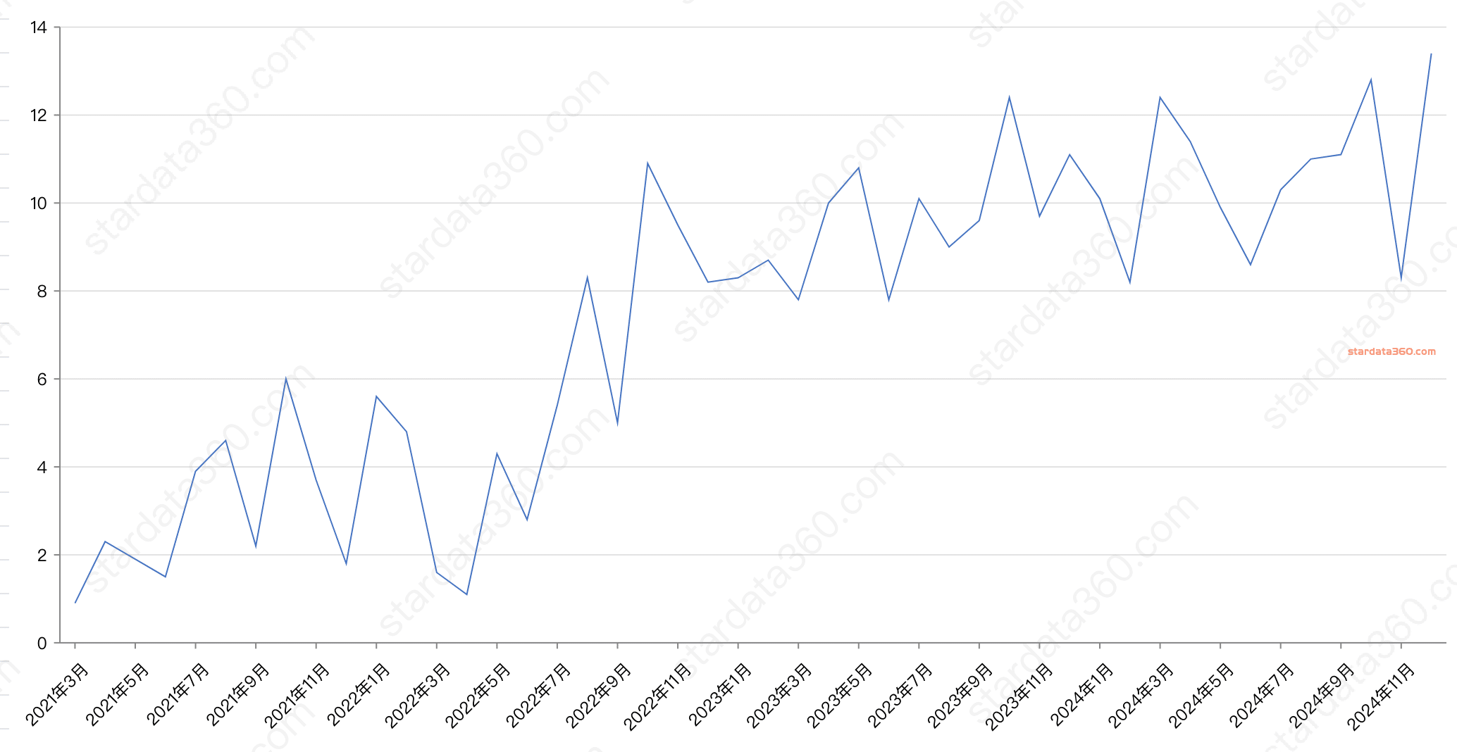 本篇文章将为大家介绍2021.3-2025.12各月新能源汽车出口量