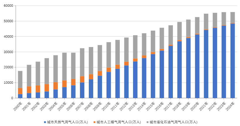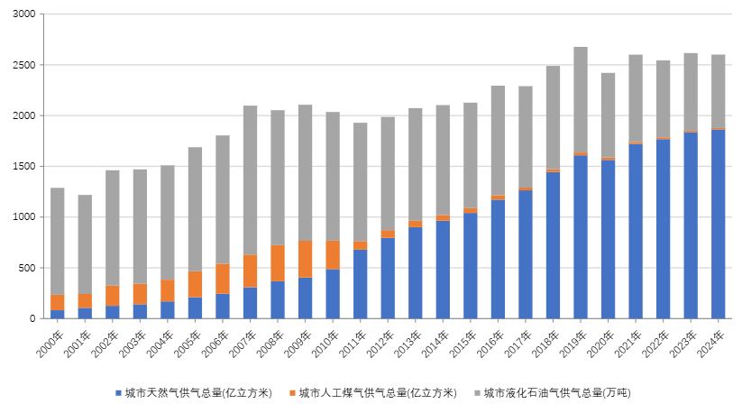 - 2000-2024城市人工煤气供气总量(亿立方米)